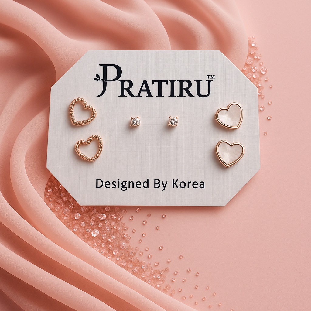 Heart Stud Earrings Set for Women | Pratiru Korea Design